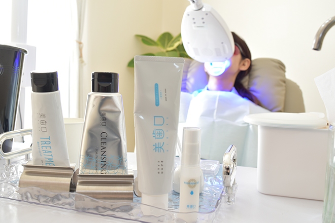 専用の溶剤と光照射で浮かした歯の汚れを歯磨きで落としていきます